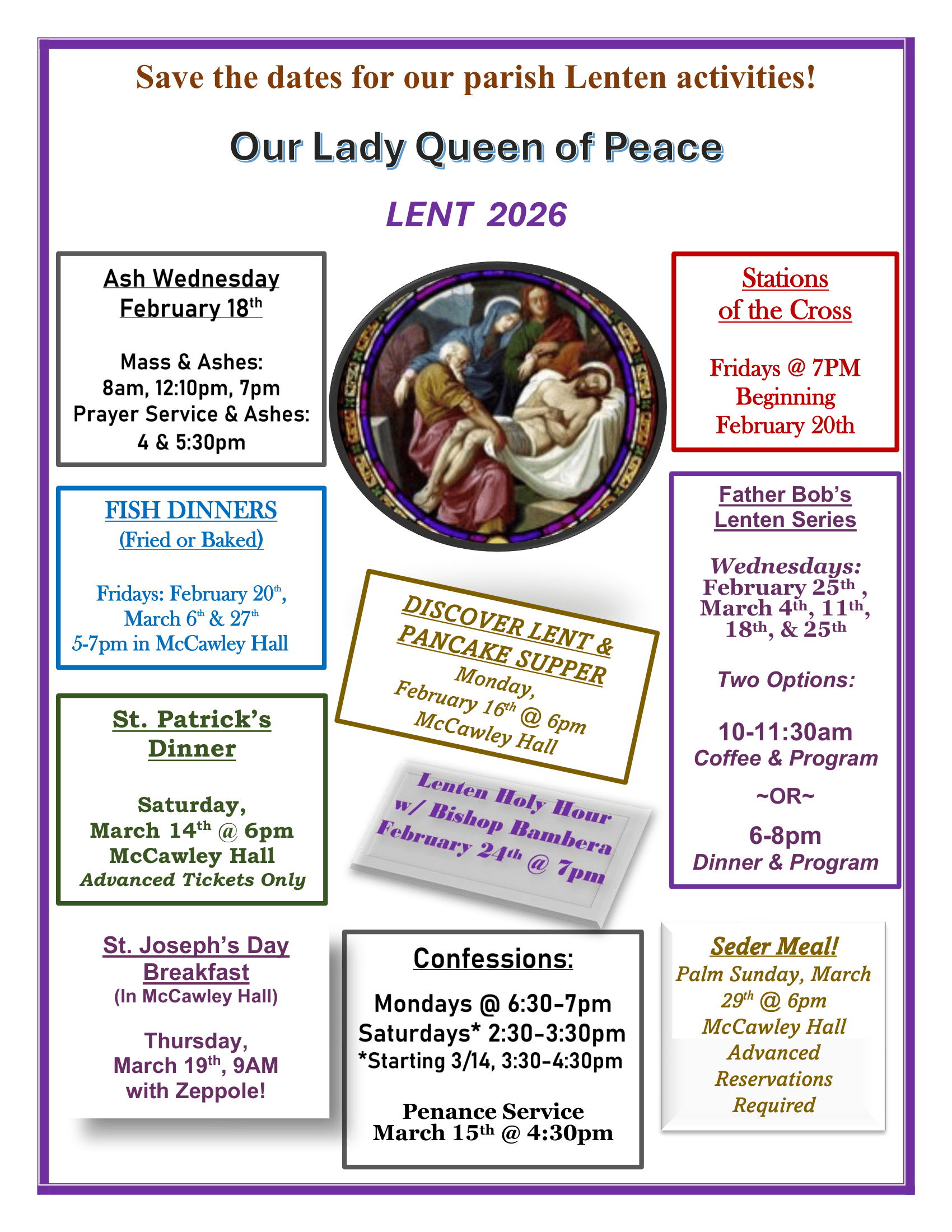 LENT BEGINS FEBRUARY 22nd! Click HERE for all of our parish events during this holy season.