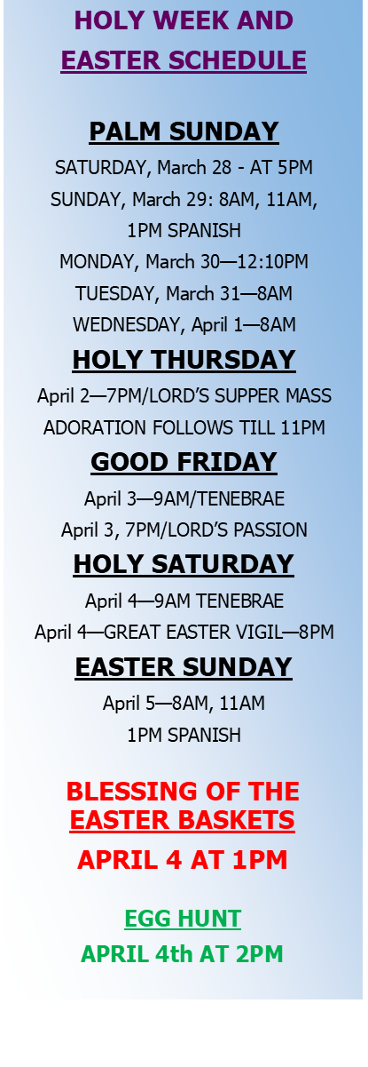 Click HERE to view the Holy Week and Easter schedule.